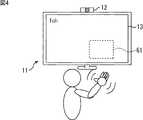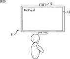 例えば、図12乃至図20に示すように、視聴対象はWebページであってもよい。この場合、まず最初に、ユーザは、図12に示すように、例えばリンク82が張られたWebページ(WebPage1)の視聴中に、カメラ12に向かって手を振る。これにより、画像処理装置11では、領域81において、ユーザによる手振りがトリガとして検出され、領域81において特徴点が抽出される。  For example, as shown in FIGS. 12 to 20, the viewing target may be a web page. In this case, first, as shown in FIG. 12, the user shakes his / her hand toward the