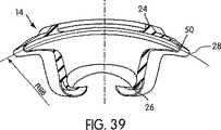図6、6C、14〜33に示すように、クッション(14)の好ましい顔面接触部分(26)は、側壁(36)と、この側壁(36)から離間する向きに延出されたリム(38)と、実質的にリム(38)を囲むようにして設けられたメンブラン(40)と、を備えている。例えば、Kwok氏他による米国特許第6,112,746号明細書や、2002年8月12日付けで出願された米国特許予備出願シリアル番号第60/402,509号明細書を参照されたい。これら文献の記載内容は、参考のため、ここに組み込まれる。リム(38)および側壁(36)は、顔面接触部分(26)のための支持構造を提供し、また、メンブラン(40)は、顔面接触部分(26)に対するシール構造を提供する。 As shown in FIGS. 6, 6C, 14-33, the preferred face contact portion (26) of the cushion (14) includes a side wall (36) and a rim (38) extending away from the side wall (36). ) And a membrane (40) provided so as to substantially surround the rim (38). See, for example, U.S. Patent No. 6,112,746 by Kwok et al. And U.S. Patent Application Serial No. 60 / 402,509 filed August 12,2002. The contents of these documents are incorporated herein for reference. The rim (38) and side wall (36) provide a support structure for the face contact portion (26), and the membrane (40) provides a sealing structure for the face contact portion (26).