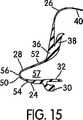 図14〜図33は、クッション(14)の様々な断面を示している。これら様々な断面は、患者の顔面の様々な領域において、リムとメンブランとの間の距離が様々なものとされていることを図示している。さらに、様々な断面は、患者の顔面の様々な領域において、ガセット部分(50)が様々な構成とされていることおよびガセット部分(50)の距離(d)が様々なものとされていることを、図示している。 14-33 show various cross sections of the cushion (14). These various cross-sections illustrate the various distances between the rim and the membrane in various regions of the patient's face. In addition, the various cross-sections have various configurations of the gusset portion (50) and various distances (d) of the gusset portion (50) in various regions of the patient's face. Is illustrated.