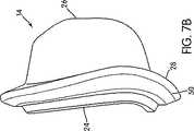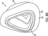 図6Bは、本発明の代替可能な実施形態を示しており、この実施形態においては、ガセット部分(50)と、クッション(14)の顔面接触部分(26)と、の間に、補強リング(64)を備えている。1つの態様においては、補強リング(64)は、シリコーンの肉厚ビードから形成され、クッション(14)に対して成型される。補強リング(64)は、補強フープとして機能し、クッション(14)が圧力ポイントのところで膨張する傾向を低減させる。他の態様においては、補強リング(64)は、ポリカーボネートで作られており、オーバーモールドされるかあるいは押込係合される。 FIG. 6B shows an alternative embodiment of the present invention in which a reinforcement ring (between the gusset portion (50) and the face contact portion (26) of the cushion (14) is shown. 64). In one embodiment, the reinforcing ring (64) is formed from a thick silicone bead and molded to the cushion (14). The reinforcement ring (64) functions as a reinforcement hoop and reduces the tendency of the cushion (14) to expand at the pressure point. In other embodiments, the reinforcing ring (64) is made of polycarbonate and is overmolded or indented.