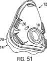 これらの手法により、顔面の接触ライン上の接触力は、マスク圧力だけの関数ではなく、例えば、ガセット部分(50)内のスプリング部材の関数ともなる。これは、圧力の不安定さを改善し、高圧でのシール圧力を低減し、ガセット部分の視覚的なインパクトを低減する。 With these techniques, the contact force on the face contact line is not only a function of the mask pressure, but also a function of, for example, a spring member in the gusset portion (50). This improves pressure instability, reduces the sealing pressure at high pressure, and reduces the visual impact of the gusset portion.