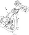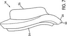 図示の実施形態においては、クッション(14)の顔面非接触部分(24)は、フレーム(12)に対して着脱可能に取り付けられる。例えば、図3、3B、6、6C、15に示すように、顔面非接触部分(24)は、ショルダ(30)とフランジ(32)と、を備えている。クッションクリップ(34)(図2、2B、3、3B参照)は、フレーム(12)に対して着脱可能に係合する。これにより、ショルダ(30)が、クリップ(34)とフレーム(12)の間に配置され、これにより、フレーム(12)に対してクッション(14)を取り付けることができる。これに関しては、例えば、本出願人による出願であるとともに現在係属中の、2002年9月6日付けで出願された米国特許予備出願シリアル番号第10/235,846号明細書を参照されたい。この文献の記載内容は、参考のため、その全体がここに組み込まれる。さらに、フランジ(32)は、シールを提供し得るようにして、配置される。代替的には、クッション(14)の顔面非接触部分(24)は、当該技術分野においては公知であるように、ストラップや、摩擦係合や、タングとグルーブとを備えた構成や、これらの組合せを使用することにより、フレーム(12)に対して着脱可能に取り付けることができる。しかしながら、クッション(14)の顔面非接触部分(24)は、例えば接着剤や機械的固定手段を使用して、フレーム(12)に対して恒久的に取り付けることもできる。 In the illustrated embodiment, the non-face contact portion (24) of the cushion (14) is detachably attached to the frame (12). For example, as shown in FIGS. 3, 3B, 6, 6C, and 15, the non-face contact portion (24) includes a shoulder (30) and a flange (32). The cushion clip (34) (see FIGS. 2, 2B, 3, 3B) is detachably engaged with the frame (12). Thereby, the shoulder (30) is arrange | positioned between a clip (34) and a flame | frame (12), and, thereby, a cushion (14) can be attached with respect to a flame | frame (12). In this regard, see, for example, US Patent Application Serial No. 10 / 235,846, filed September 6, 2002, filed by the present applicant and pending. The contents of this document are incorporated herein in their entirety for reference. Furthermore, the flange (32) is arranged in such a way that it can provide a seal. Alternatively, the non-face contact portion (24) of the cushion (14) may be configured with straps, frictional engagement, tongues and grooves, as known in the art, By using the combination, it can be detachably attached to the frame (12). However, the non-face contact portion (24) of the cushion (14) can also be permanently attached to the frame (12) using, for example, an adhesive or mechanical fastening means.