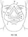 クッションを備えている従来のマスクアセンブリにおいては、シールは、クッションの接触ラインに沿って作用する接触力の結果として、クッションと患者の顔面との間に形成される。接触力は、典型的には、マスクアセンブリのフレームとクッションの壁とクッションのシール形成部分とを介して作用するヘッドギアストラップの張力の関数である。従来のマスクアセンブリにおいては、フレームは、鼻の少なくとも1つの部分を受領し得るよう構成されたキャビティまたは容積を形成する。クッションは、キャビティの周縁部分を形成する。したがって、使用時には、キャビティ内に位置した患者の顔面部分が、加圧状態とされたエアあるいは呼吸可能ガスに対して、曝される。よって、その加圧状態に基づく力を受ける。 In conventional mask assemblies having a cushion, a seal is formed between the cushion and the patient's face as a result of contact forces acting along the cushion contact line. Contact force is typically a function of the tension of the headgear strap acting through the frame of the mask assembly, the cushion wall and the seal-forming portion of the cushion. In conventional mask assemblies, the frame forms a cavity or volume configured to receive at least one portion of the nose. The cushion forms the peripheral portion of the cavity. Thus, in use, the patient's facial portion located within the cavity is exposed to pressurized air or breathable gas. Therefore, the force based on the pressurized state is received.