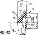 図34〜図42は、クッション(14)の一実施形態に関する構造的詳細および様々な寸法を示している。例えば、クッション(14)は、42〜62mmという範囲の長さを有しており、好ましくは52mmという長さを有しており、90〜110mmという範囲の高さを有しており、好ましくは100.5mmという高さを有しており、95〜115mmという範囲の幅を有しており、好ましくは103.2mmという幅を有している。クッション(14)の一実施形態においては、図34〜図42の中で図示された寸法は、±62%あるいは100%にわたって変更することができる。 Figures 34-42 show structural details and various dimensions for one embodiment of the cushion (14). For example, the cushion (14) has a length in the range of 42-62 mm, preferably has a length of 52 mm, and has a height in the range of 90-110 mm, preferably It has a height of 100.5 mm, a width in the range of 95 to 115 mm, and preferably a width of 103.2 mm. In one embodiment of the cushion (14), the dimensions illustrated in FIGS. 34-42 can vary over ± 62% or 100%.