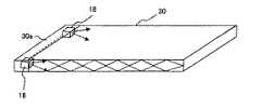 一般に、照光の光源としてのLEDを配置する場合、図4に示すように、導光板30の端部30aに集中的に配置される。このためLED18を実装するための専用のスペースが必要になる。しかしながら、キーボードの場合には全面を全て均一に照光する必要はなく、キートップ上に印刷された文字やアイコン情報を透過させれば充分であるので、本実施の形態では、図5に示すように、キースイッチとキースイッチの間にLED18を実装することにより、LED実装のための専用のスペースが不要となる。またLED18を導光板(バックプレート)17の中に埋め込んであるので、LED18を実装したために導光板(バックプレート)17が厚くなるということもない。なお図4は従来のLEDの実装状態を示す実装状態図で、図5は本実施の形態におけるLEDの実装状態を示す実装状態図である。  In general, when LEDs as an illumination light source are arranged, they are intensively arranged at the