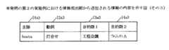 図3は、情報反応テーブル103,203 の内容の例を示す。テーブルには、前述した情報流出部101,201 より送出される情報の内容にそれぞれ対応する主語T1、動詞T2、目的語1T3、目的語2T4があり、情報検知部102,202 において共通の通信路を流れてきた情報と照合するキーとなる。さらに、これらの情報が合致した場合に当該オブジェクト1,2 で実行される処理を定義した処理内容T5からなる。