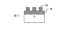犠牲材料において十分な表面官能性を生じさせる1つの方法は、エッチング後に反応性金属種を犠牲材料と均一に反応させ、それによってバリア層に必要な厚さを最小限にする、カルボキシル、アミン、イミン、オキシム、ヒドロキシ、アルデヒド、ジスルフィド、またはチオール基あるいはそのいずれかの組合せなどの、反応性官能基を犠牲材料に包含させることである。均一バリアを作成する別の態様は、反応性金属種の良好な表面被覆を供給するために十分な数の表面シラノール基をエッチング後に提供する、ケイ素含有モノマーまたは他の酸化物またはセラミックあるいはチタンまたはアルミニウムを含むモノマーなどの他の金属含有モノマーを重合単位として含む、犠牲ポリマーを使用するものである。そのような別の方法は、ケイ素−酸素−金属結合が極めて安定であり、バリア層の犠牲材料への良好な付着を提供するため好ましい。表面官能基を作成するまた別の方法は、既存の官能基をCVDまたはALD金属前駆体と反応する官能基に変換する反応溶液またはプラズマに犠牲材料をさらすことである。1つの形態において、四塩化チタンに対して非反応性である(メタ)アクリレート部分で構成される犠牲材料は、表面官能基をヒドロキシルおよび/またはカルボキシル基などの部分に変換するために酸素含有プラズマにさらされる。これらの基はこれで、非プラズマ処理基よりもチタン前駆体に対してより反応性である。 One method of generating sufficient surface functionality in the sacrificial material is to react reactive metal species with the sacrificial material uniformly after etching, thereby minimizing the thickness required for the barrier layer, carboxyl, amine, To include a reactive functional group in the sacrificial material, such as an imine, oxime, hydroxy, aldehyde, disulfide, or thiol group, or any combination thereof. Another aspect of creating a uniform barrier is silicon-containing monomers or other oxides or ceramics or titanium or titanium that provide a sufficient number of surface silanol groups after etching to provide a good surface coating of reactive metal species. A sacrificial polymer containing other metal-containing monomers such as monomers containing aluminum as polymerized units is used. Such another method is preferred because the silicon-oxygen-metal bond is very stable and provides good adhesion of the barrier layer to the sacrificial material. Another method of creating surface functional groups is to expose the sacrificial material to a reaction solution or plasma that converts existing functional groups to functional groups that react with CVD or ALD metal precursors. In one form, a sacrificial material composed of (meth) acrylate moieties that are non-reactive with titanium tetrachloride is used to convert surface functional groups into moieties such as hydroxyl and / or carboxyl groups. Exposed to. These groups are now more reactive towards titanium precursors than non-plasma treated groups.