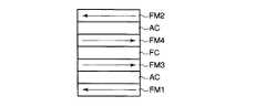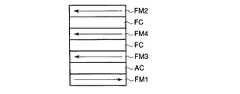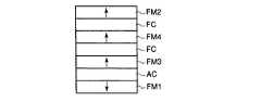 図19乃至図25、図34乃至図40では、最上の強磁性サブレイヤーFM1と、最下の強磁性サブレイヤーFM2とが反強磁性的に交換結合している場合を示している。図19、図34の構造では、強磁性サブレイヤーFM1、FM2の間に非磁性サブレイヤーACが設けられる。強磁性サブレイヤーFM1は、強磁性サブレイヤーFM2と反強磁性結合している。 FIGS. 19 to 25 and FIGS. 34 to 40 show a case where the uppermost ferromagnetic sublayer FM1 and the lowermost ferromagnetic sublayer FM2 are antiferromagnetically exchange-coupled. In the structure of FIGS. 19 and 34, a nonmagnetic sublayer AC is provided between the ferromagnetic sublayers FM1 and FM2. The ferromagnetic sublayer FM1 is antiferromagnetically coupled to the ferromagnetic sublayer FM2.