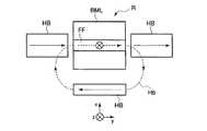 ハードバイアス層HBは、自由層FFにy方向のバイアス磁界Hbを加えることができるならば、必ずしも基本積層膜BMLのy軸方向に存在しなくても良い。例えば、図42乃至図44に示すように、基本積層膜BMLに対してx方向に存在していても良い。図42、図43、図44において、ハードバイアス層HBは、基本積層膜BMLの上下一方または両方に、基本積層膜BMLと離れて設けられている。また、図45乃至図47に示すように、基本積層膜BMLに対してx方向とy方向のそれぞれに配置させることもできる。図45、図46、図47において、ハードバイアス層HBは、基本積層膜BMLの左右両方と、上下一方または両方と、基本積層膜BMLと離れて設けられている。The hard bias layer HB does not necessarily exist in the y-axis direction of the basic multilayer film BML as long as the y-direction bias magnetic fieldHb can be applied to the free layer FF. For example, as shown in FIGS. 42 to 44, it may exist in the x direction with respect to the basic laminated film BML. 42, 43, and 44, the hard bias layer HB is provided on one or both of the upper and lower sides of the basic laminated film BML and separated from the basic laminated film BML. Also, as shown in FIGS. 45 to 47, the base laminated film BML can be arranged in each of the x direction and the y direction. 45, 46, and 47, the hard bias layer HB is provided apart from both the left and right sides of the basic laminated film BML, one or both of the upper and lower sides, and the basic laminated film BML.