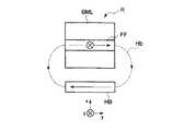 以下、従来のスピン偏極電流注入による磁化反転方法について説明する。まず、本明細書において従来の方法1と称する、スピン偏極電流注入による磁化反転について説明する。従来の方法1では、図48に示したような、固着層FP、中間層S、自由層FFからなる積層構造を基本構造とする磁気記録素子を用いる。自由層FFの磁化方向は、固着層FPの磁化方向に対して平行あるいは反平行であり、ある臨界値Jc以上の大きさの電流を、この素子の膜面(各積層膜が向き合う面)に垂直方向に流すことにより磁化を反転することができる。このような素子に、臨界値Jcの1.5倍の電流を流した場合のシミュレーションを行った。この際、自由層FFの磁化方向の固着層FPの磁化方向に対する初期角度は、膜面内で5度とした。この結果、磁化の反転に要する時間は約7nsであった。これより電流が小さい場合や初期角度が小さい場合には、さらに反転時間が長くなる。  Hereinafter, a conventional magnetization reversal method using spin-polarized current injection will be described. First, magnetization reversal by spin-polarized current injection, which is referred to as