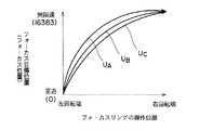 本実施の形態では、レンズ情報として、レンズ装置のレンズ倍率(レンズ装置がズーム機能付きの場合には、最大焦点距離)を取得し、そのレンズ倍率に応じて特性曲線を切り替える。図3は、レンズ倍率に応じて切り替えられる特性曲線の例を示した図である。同図には、レンズ倍率が異なる3種類のレンズ装置に対応して適切と考えられる特性曲線UA、UB、UCが示されており、特性曲線UAは、3種類のレンズ装置のうちレンズ倍率が最も大きいものに対応し、特性曲線UCは、レンズ倍率が最も小さいものに対応する。