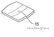 間隙充填材および緩衝材ダンネージとして使用するための材料を製造および分配する本発明のシステム23は、図6に示されている。システムは、小型装置1と、小型装置が取り付けられる架台部2を組み合わせて含む。システム23はさらに、操縦者26が装置1からピロー状に成形された材料15を移動し、出荷される物品が入った箱27の中にそれを差し込むために作業面25を提供する作業台24を備える。図6のシステム23は、さらに、小型装置に供給するために小型装置1の供給ローラ6および7によって引っ張ることにより材料を解くことができる用紙ロール5を回転可能に支えるロール支持体28を備える。図6のシステム23のロール支持体28は、車輪32付きの材料カート31の形を取っている。  A system 23 of the present invention for producing and dispensing material for use as a gap filler and buffer dunnage is shown in FIG. The system includes a combination of a