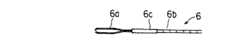 前記操作ワイヤ6,9は、同一構造であり、操作ワイヤ6について説明すると、図10に示すように、ループワイヤ6aと基端ワイヤ6bよりなる。金属製の撚り線より構成される基端ワイヤ6bの先端に閉じたループワイヤ6aは成形される。ループワイヤ6aを形成するのは、基端ワイヤ6bの撚り線の一本である。撚り線の芯線をループワイヤ6aに使用すると、組立て性が良い。芯線は、撚り線でも単線でも良い。ループワイヤ6aと基端ワイヤ6bの接合は、金属製の接続パイプ6cを介して、溶接または接着される。