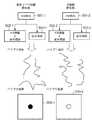これと全く同じように、大腸菌の存在を判定する目的のために設計されたDNAマイクロアレイが正しく動作するならば、左のハイブリ溶液では、スポットがネガティブに反応し、右のハイブリ溶液では、スポットがポジティブに反応する。本実施形態では、いろいろな菌に対してそれぞれ特異的に反応する数種類のスポットを同時に並べたDNAマイクロアレイを用いて、感染菌の判定を行う。 In exactly the same way, if a DNA microarray designed for the purpose of determining the presence of E. coli works correctly, the left hybrid solution reacts negatively and the right hybrid solution produces spotless Responds positively. In this embodiment, the infecting bacteria are determined using a DNA microarray in which several types of spots that react specifically with various bacteria are arranged at the same time.