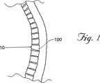 図1は、典型的なヒトの棘1を示し、ここで圧縮骨折10が腰椎100において生じている。図3に最もよく示されるように、椎骨100は骨折しており、上部板103および底部板104は、椎骨100の前壁10に向かって全体的に押し下げられ、そしてそれらの骨折前の通常の平行な配向(平行線90として概して示されている)から離れる。