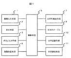 図16において、1は、カメラなどの画像入力手段、2は、液晶パネルなどの表示手段、4は、表示手段2を用いてペンを使って表示画面上の座標とペンの動きを検出するペン入力手段、5は、全体の制御を行う制御手段、6は、入力手段1から入力された画像を記憶する画像記憶手段、7は、画像記憶手段6に記憶された画像から文字列画像の位置を検索する文字列検索手段、8は、文字列検索手段7で取得された文字列画像の画像上の場所を記憶する文字列テーブル、10は、選択された文字列画像から文字を認識する文字認識手段、12は、文字列画像から1文字単位の画像に分割する文字位置検出手段、15は、2つの文字列画像を合成する合成手段、16は、文字列画像を2つの文字列画像に分割する分割手段である。