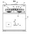 図1に示すように、主装置12は基台18を有し、この基台18上の中央位置に、X軸と平行にワーク操作ユニット20が設置されている。また、ワーク操作ユニット20の両脇に、複数(例えば4基)の輪郭測定ユニット22、22、22、22が設置されている。このうち、2基の輪郭測定ユニット22、22は、ワーク操作ユニット20の片側に配置され、他の2基のワーク操作ユニット20の反対側に配置されている。これら4基の輪郭測定ユニット22、22、22、22は、図示のように互いに線対称の位置関係をもっているが、その構造は同一である。As shown in FIG. 1, the