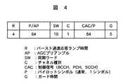 次に、統括基地局104は、無線キャリアF1の通信チャネルを用いて緊急防災情報を送信する(ステップ611)。この場合の通信チャネルのフレーム構成を図5に示す。図4は、ARIB  STD−T86で定められている通信チャネルのフレーム構成を示すもので、R:バースト過渡応答ランプ時間、SW:同期ワード、C:チャネル種別、TCH:トラフィックチャネル、FACCH:高速付随チャネル(通話、通報情報)、P:パイロットシンボル(通常、1シンボル)、G:ガード時間を示し、合計148ビットで構成されている。そして、上述した緊急防災情報は、高速付随チャネルFACCHで送信される。  Next, the