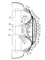 (2)弾性的な伸縮性を有して横方向へ延びるスペーサが表面シートとパネルとの間に伸長下に配置され、スペーサが、パネルの固定両側部に固着された固定両端部と、固定両端部の間に延びていてパネルに非固着の自由中央部とを有し、パネルの固定両側部どうしがスペーサの収縮力によって物品の横方向内方へ引き寄せられ、パネルの自由中間部が表面シートの上方に向かって横方向へ弧を画いている。The present invention having the first feature has the following embodiments.