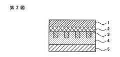 また、本発明の透明導電積層体を適用したデバイス、例えば色素増感型太陽電池及び有機EL素子においては、透明導電層と補助電極層の組合せによって極めて低抵抗値が得られると共に、補助電極層が透明導電層と透明基材の間にあって、透明導電層の素子(デバイス)形成側の表面が極めて平滑で凹凸や突起が存在しないため、素子電極間で電気的短絡を生ずることがない。従って、極めて低抵抗の透明導電層(透明電極層)を備え、低コストで、大面積化が可能な色素増感型太陽電池や有機EL素子等のデバイスを提供することができる。特に色素増感型太陽電池に適用する場合、補助電極層が透明導電層を挟んで電解質と反対側にあるため、補助電極層の腐蝕を防止することができる。In addition, in a device to which the transparent conductive laminate of the present invention is applied, for example, a dye-sensitized solar cell and an organic EL element, an extremely low resistance value is obtained by a combination of a transparent conductive layer and an auxiliary electrode layer, and an auxiliary electrode layer Is between thetransparent conductive layer and the transparent substrate, and the surface of the transparent conductive layer on the element (device) forming side is extremely smooth and has no irregularities or protrusions, so that an electrical short circuit does not occur between the element electrodes. Therefore, it is possible to provide a device such as a dye-sensitized solar cell or an organic EL element that has atransparent conductive layer (transparent electrode layer) with an extremely low resistance and can be enlarged at a low cost. In particular, when applied to a dye-sensitized solar cell, the auxiliary electrodelayer is on the side opposite to the electrolyte with the transparent conductive layer interposed therebetween, so that the corrosion of the auxiliary electrodelayer can be prevented.
