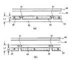 また、実施例1に係る液晶表示パネル11の透視部に位置する第1部分34の一部拡大断面を図5(a)及び図5(b)に示す。なお、図5(a)は透視部に位置する第1部分34の表面に透明部材42を配置したものを示し、図5(b)は透視部に位置する第1部分34と一方のガラス基板35との間に透明部材42を設けたものを示し、いずれも図4に記載のものと同一の構成部分については同じ参照符号を付与してその詳細な説明は省略する。  Moreover, the partially expanded cross section of the