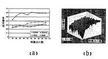 FIGS. 6A and 6B are diagrams showing the dependency of different feature point selection methods on the number of feature points.