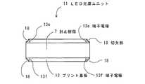 次に、本発明の第2の実施の形態であるLED光源ユニットの作用効果について説明する。LED光源ユニット11の4隅に切欠部18を設けたので、封止樹脂7をユニット両端部まで延長して構成できるようになり、両端部に発光面の暗部が生じなくなった。その他の効果は第1の実施の形態の場合と同様である。  Next, the effect of the LED light source unit which is the 2nd Embodiment of this invention is demonstrated. Since the