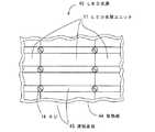 図13において、40はLED光源ユニット11を任意の個数パネル状に並べて構成したパネル型LED光源を示している。44は熱伝導性の高い銅合金等の金属から成る1枚のパネル状の放熱板を示している。45は図14に詳細を示した連結基板を示している。連結基板45には所定の間隔に複数の貫通穴45aが形成されており、背面にはそれぞれが隣接する端子電極3e及び3f同士を接続するための一対の電極45bが各々の貫通穴45aを挟むように形成されている。  In FIG. 13, reference numeral 40 denotes a panel type LED light source configured by arranging an arbitrary number of LED light source units 11 in a panel shape. Reference numeral 44 denotes a single panel-like heat sink made of a metal such as a copper alloy having high thermal conductivity. Reference numeral 45 denotes a connecting board whose details are shown in FIG. A plurality of through