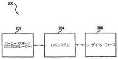 EASシステム204は、任意のタイプのEASタグ/マーカーの作動状態を検出し変更するように構成することができる。当業者であれば、EASタグには複数のタイプがあることを理解するであろう。最も一般的なタイプのEASタグとして、EM(電磁気)、RF(無線周波)、およびAM(音響磁気)の3つがある。これら3種類のタイプは、それぞれの検出、作動化、および非作動化システム内でのみ動作する。このようなタグを励起し、その存在を検出するためのさまざまな送信機および受信機システムがよく知られており、市販されている。したがって、このようなタグを励起し検出する基本的な方法は、ここでは詳述されない。EASシステム204は、バーコードスキャナ202およびユーザインターフェース206とインターフェースすることができる。  The