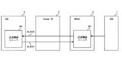 図3に示すように、ネットワーク側は、CN(Core Network)1、RNC(Radio Network Controller:無線回線制御装置)2、Node  B(無線基地局)3により構成されており、RNC2に上記のメカニズムを実現するための機能である送達確認ユニット201が内蔵されており、移動通信端末であるUE4にも、それに対応して送達確認ユニット401が内蔵されている。この送達確認ユニットは、3GPPでは、RLC(Radio Link Control)と称される。  As shown in FIG. 3, the network side includes a CN (Core Network) 1, an RNC (Radio Network Controller) 2, and a Node B (Radio Base Station) 3, and the