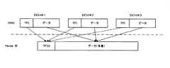 そこで、本発明では、Node  B3が、実際に使用されることのない下りのDCHに関する情報を、TFIやTFCIの構築対象から排除することができる様に、RNC2のNBAP処理部22からNode  B3へ、その旨を告知するのである。そのために、具体的には、RNC側から“Unidirectional DCH Indicator”なるインディケータ情報を送出し、Node  B側で、このインディケータ情報を受信すると、実際に使用されることのない下りのDCHに関する情報を、TFIやTFCIの構築対象から排除するようする。  Therefore, in the present invention, the