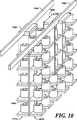 図11は、オフセット  設置面積ゼロ収納の第3の態様の透視図であり、図7の高架ホイスト機構が固定棚の多重配列に接続して使用される;