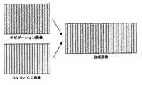 そして、表示制御部15は、入力されたナビゲーション画像データとDVD/CD画像データとを加工することによって、図2に示すように、ナビゲーション画像とDVD/CD画像とが1ラインずつ交互に整列された合成画像を表示するためのデュアルビュー表示用の合成画像データを生成するようになっている。  Then, the
