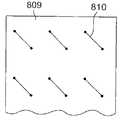 概略的に言えば、アクチュエータは、ヘビの筋肉に若干似ており、制御が必要な方向に向けられる。例えば、図8A、図8B、図8Cは、3枚のシート809を示し、各シート809は、それぞれ様々な方向に向けられた一連のアクチュエータ810(各図において、符号は、1個のアクチュエータのみに付している)を備える。これらのシート809を互いに積層することにより、例えば曲がり(bent)、円周方向の収縮等が可能な積層構造体(図示せず)を作成することができる。  Generally speaking, the actuator is somewhat like a snake muscle and is oriented in the direction that needs to be controlled. For example, FIG. 8A, FIG. 8B, and FIG. 8C show three