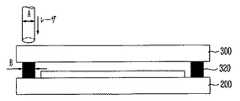 また、本発明の効果を極大化させるためには、表示装置を設計する時、前記フリット320と一致する前記非画素領域220の基板200上に金属ラインなどのようなパターンに照射されないようにすることが好ましい。  In order to maximize the effect of the present invention, when a display device is designed, a pattern such as a metal line is not irradiated on the