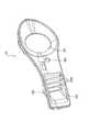 また、前面部22Eには、図1に示すように、上端縁から下方側に向けて平面視コ字状の切り欠き22E1が形成されている。そして、アッパーケース21およびロアーケース22が組み合わされた状態で、前面部21Eの切り欠き21E1のコ字状内側部分、および前面部22Eの切り欠き22E1のコ字状内側部分にてフロントケース23が支持固定される。  Further, as shown in FIG. 1, a cutout 22E1 having a U-shape in plan view is formed on the
