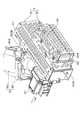 これらのうち背面部22Dにおいて、背面側から見て左側部分には、図2に示すように、上端縁から下方側に向けて平面視コ字状の切り欠き22D1が形成されている。そして、アッパーケース21およびロアーケース22を組み合わせた状態で切り欠き21D1,22D1が接続して開口部25が形成される。この開口部25には、図2に示すように、該開口部25の形状に対応した外形形状を有する接続端子設置部26が嵌合固定される。