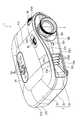 フロントケース23は、図1、図3または図4に示すように、左右方向に延びる略楕円形状を有し、アッパーケース21およびロアーケース22と接続することで、切り欠き21E1,22E1(図1)にて形成される開口部分を閉塞する。