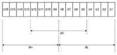 活動強度計算手段26では、A/Dコンバータから出力される16ビットの加速度から上記の演算式を使用して単位時間(10秒間)の活動強度を算出するように構成されており、この演算処理速度の向上を図るために、加速度や歩数の大小に応じて、図16で示される16ビット列の内の3つの部分ビット列(8ビット長)を選択的に使用する。即ち、加速度や歩数が第1の閾値未満の場合は、下位ビット列BL(b1〜b8)を使用し、加速度や歩数が第1の閾値と第2の閾値の間では、中位ビット列BC(b5〜b12)を使用し、第2の閾値以上の場合は、上位ビット列BH(b9〜b16)を使用する。 The activity intensity calculation means 26 is configured to calculate the activity intensity per unit time (10 seconds) from the 16-bit acceleration output from the A / D converter using the above arithmetic expression. In order to improve the speed, three partial bit strings (8-bit length) of the 16-bit string shown in FIG. 16 are selectively used according to the acceleration and the number of steps. That is, when the acceleration or the number of steps is less than the first threshold, the lower bit string BL (b1 to b8) is used, and when the acceleration or the number of steps is between the first threshold and the second threshold, the middle bit string BC (b5 ˜b12) is used, and when the value is equal to or greater than the second threshold, the upper bit string BH (b9 to b16) is used.