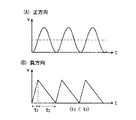 図15は、本実施の形態におけるマイクロポンプ100の第1の変形例の駆動部120が圧電素子107に印加する電圧の一例を示す図である。図15(A)は、液体を加圧室109から第1液室111に向かう方向に搬送する場合の波形を示し、図15(B)は、液体を第1液室111から加圧室109に向かう方向に搬送する場合の波形を示す。図15(A)に示す波形は、正弦波である。この正弦波は、振動板105が共振点で振動するように圧電素子107に印加される電圧の波形である。その結果、この正弦波の電圧が圧電素子107に印加されると、液体がマクロには、第1流路130の方向性に従った方向、すなわち、第1液室111から加圧室109に向かう方向に流れることになる。  FIG. 15 is a diagram illustrating an example of a voltage applied to the