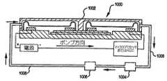 図15は本発明のさらに別の態様を示し、具体的には(例えば、グルコースモニタリングのための)血液などの生理的流体、または標的の検体を含有する患者からの他の体液を抽出、分析及び/または(システム内部に)保存するよう適合することができる、EKサンプリングシステム1000である。この実施形態では、サンプリングシステム1000は、外部流体ループ1008を通してEKポンプ1002に流体的に連結されるサンプラ1004及び分析装置1006に連結された、間接EKポンプ1002を含む。使用中、ポンプを動作させて、サンプラ1004によって患者から採取した生理的流体を分析装置1006へと輸送を行うことができ、そこで検体のために生理的流体を評価することができる。1つの例では、リンゲル溶液、生理食塩水または他の適切な流体を、流体ループ1008を通して給送することができ、溶液をサンプラ1004で抽出された生理的流体と混合し、分析装置1006へ輸送することができる。  FIG. 15 illustrates yet another aspect of the present invention, specifically extracting and analyzing physiological fluids such as blood (eg, for glucose monitoring) or other body fluids from a patient containing a target analyte. And / or an