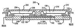図3は本発明によるさらに別の実施形態であるEKポンプ200を示す。この実施形態では、ポンプ200は間接ポンプとして構成されている。記載されているように、間接ポンプは、ポンプ流体122を移動させることによってポンプの別個の部分に第2の流体の流れを生じさせるポンプである。この第2の流体は以下作用流体126と称し、ポンプ200によって投与される薬物または他の流体とすることができる。  FIG. 3 shows an