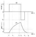 図16に、第1、第2の吸着電極143、144間に印加する電圧及び基板150と静電吸着装置113との間の静電吸着力の時間変化を示す。図15の曲線(V)は、第1、第2の吸着電極間に印加される電圧の時間変化を示しており、曲線(W)は、基板150と静電吸着装置113との間に生じる静電吸着力の時間変化を示している。