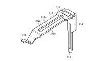 接点部212は、断面視略U字状に折り曲げられた本体部211よりも幅広の板状体である。この接点部212の下端部は凸部120における凹部121の先端側部分の下面から露出し、USB3.0用プラグコンタクトに接触可能になっている。  The