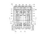 このとき、USB2.0用コンタクト群300の可動接点部313、323、333、343がUSB3.0用プラグに押圧され、可動接点部313、323、333、343及び弾性変形部312、322、332、342がボディ100の正面側凹部111及び凹部121内を上方に弾性変形する。これにより、可動接点部313、323、333、343及び弾性変形部312、322、332、342がUSB3.0用コンタクト群200の本体部211、221、231、241に対して略平行になる。  At this time, the