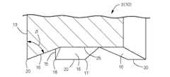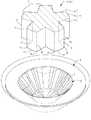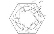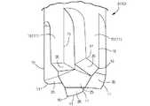 (第8実施形態)  図18および図19に本発明の第8実施形態に係るドライバービットを示す。そこでは、リブ状突起11の下端面が、緩み側エッジ15を形成する谷側周面14に向かって下り傾斜する傾斜面35とされており、傾斜面35の伸び方向と、緩み側エッジの伸び方向とで規定される角度γが、鋭角に設定されている点が、先の第2実施形態と相違する。ここでいう傾斜面の伸び方向とは、図19に示すように、リブ周面13の二つの頂点17・18を結んだ方向を示している。それ以外の点は、第2実施形態と同様であるので、同一部材には同一符号を付して説明を省略する。このように、傾斜面35を設けることによっても、先の第1実施形態の場合と同様に、打ち込み操作の容易化を図ることができる。Eighth Embodiment FIGS. 18 and 19 show a driver bit according to an eighth embodiment of the present invention. In this case, the lower end surface of the rib-shaped