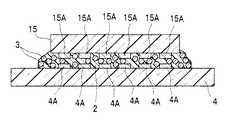 図7Aは、従来において、第2の回路形成体が電子部品15であるときの電極接合構造体の構造を示す模式平面図である。図7Aでは、電極接合部分の構造を理解し易くするために、電子部品15を取り除いた状態を示している。図7Bは、図7Aのd−d断面図であり、図7Cは、図7Aのe−e断面図である。なお、図7A中の大きな楕円は導電性粒子3の凝集が発生している領域を示している。