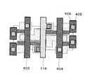 また、配線層は異なるが参考例1でも説明したように、VSS電源配線413と同層の第5層目にさらにVDD電源配線205(図4、図7参照)を設け、第2層目のVDD電源配線116を裏打ちすることでVDD電源を強化することもできる。  Further, although the wiring layers are different, as described in the reference example 1, the VDD power wiring 205 (see FIGS. 4 and 7) is further provided in the fifth layer of the same layer as the