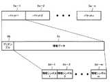 図2は、ソフトウェア無線通信システム用のソフトウェアを無線ダウンロードするリンクのパケットの構成例、並びに情報データを伝送するリンクのパケットの構成例を示す。このリンクは、基地局から端末局へのダウンリンクである。パケットは、ソフトウェアを伝送するパケット(2a-1,2a-2,...,2a-k)と情報データを伝送する情報パケット(2b-1,2b-2,...,2b-n)から構成される。