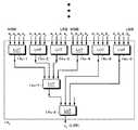CL(9b-1,9b-2,9b-3,9b-4,9b-5,9b-6)は、入力データバスの対応する各ビットにおける桁上げ信号の生成と下位ビットから上位ビットヘの桁上げ信号の伝播を行う。最終段のLUT(9c-1,9c-2,9c-3,9c-4,9c-5,9c-6,9c-7,9c-8)では和出力に対する2の補数表現に対応した符号処理とオーバフロー時の飽和処理が行われる。この例以外にも種々の加算器のアルゴリズムが提案されている。